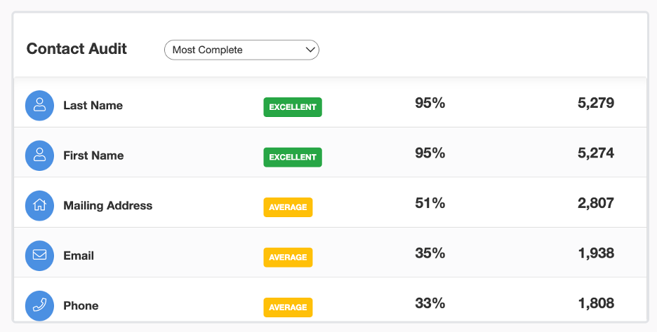 Data Completeness: The percentage of required data fields that are filled out.